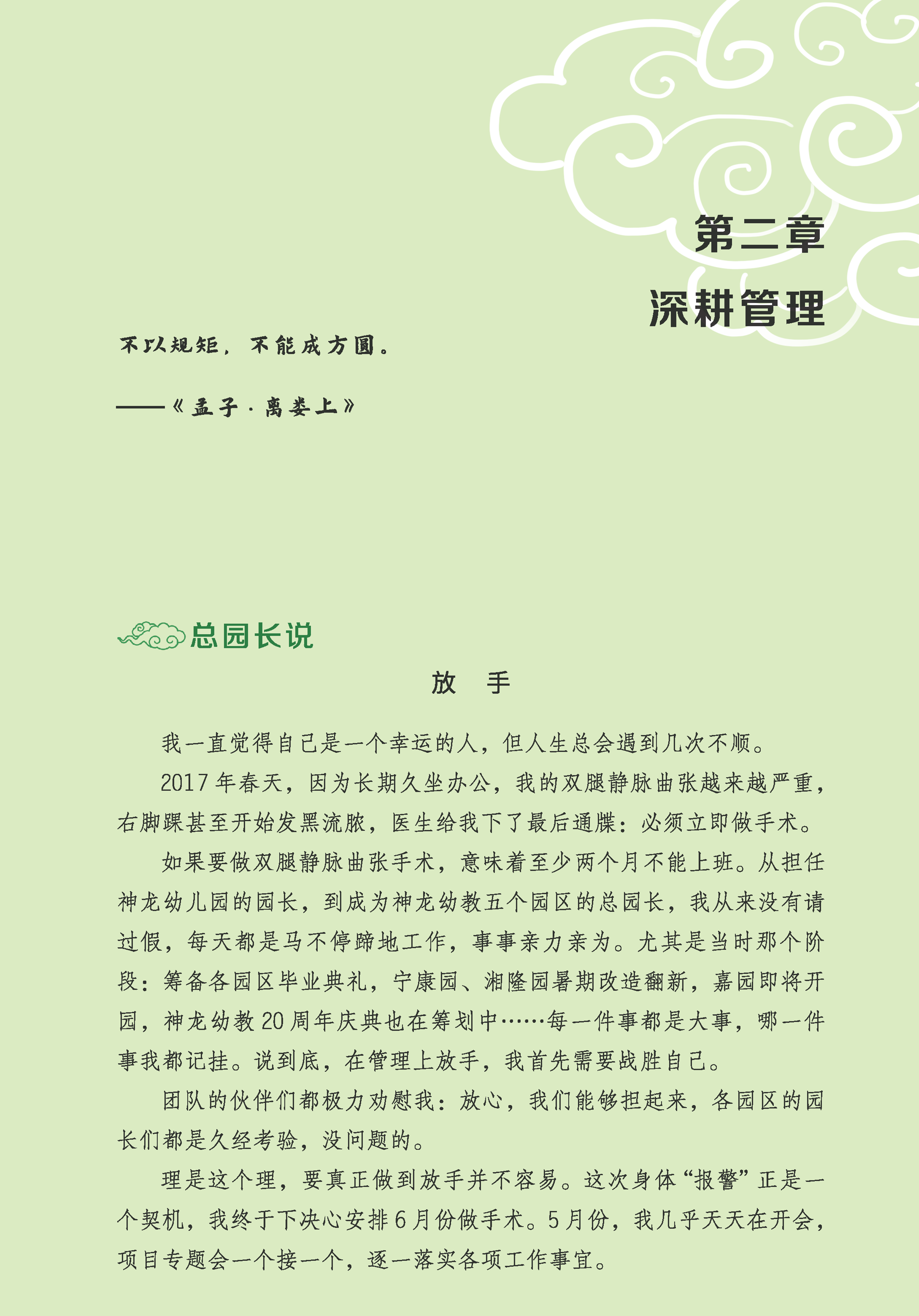 全书分为战略、品牌、人本三个篇章,以叙事与理论相结合的形式,从幼儿园的品牌推广、管理制度、课程研发、活动组织、环境创设、招生模式以及团队建设等方面入手,向读者展示了神龙幼教从最初的单体公办园,经过社会化改制后走上集团化管理道路,发展成如今的5家分园和3家教育公司的创举。书中的故事对从事幼教行业的读者职业成长具有参考价值、能为民办园的未来发展指引方向。
