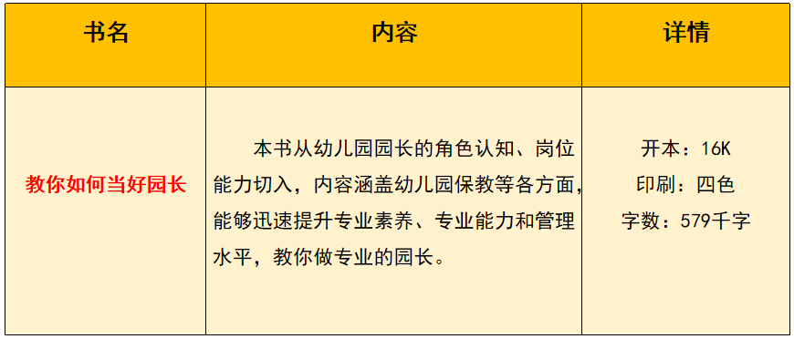 本书以《幼儿园园长专业标准》为编写依据,从幼儿园园长的角色认知、岗位能力切入,内容涵盖幼儿园园所文化与品牌建设管理、幼儿园发展规划与工作计划管理、幼儿园人力资源管理、幼儿园行政事务管理、幼儿园保教常规管理、幼儿园安全管理、幼儿园财务管理、幼儿园基建维修工作管理、幼儿园危机管理等方方面面的管理,能够有效促进园长管理观念的转变,提升其专业素养和专业能力,提升幼儿园管理水平。
