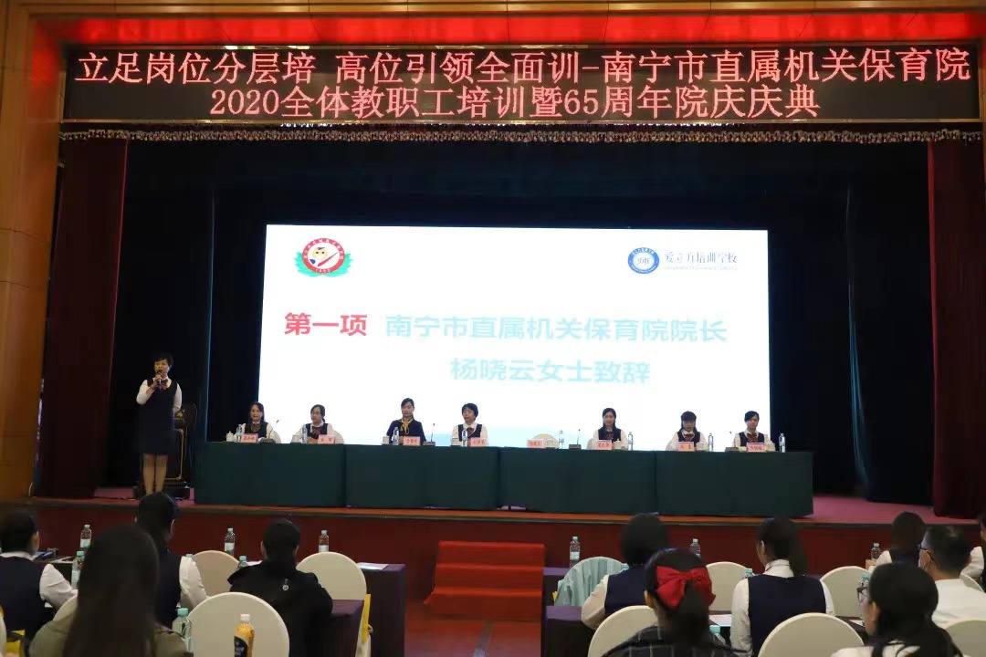 11月14日,“立足岗位分层培 高位引领全面训——南宁市直属机关保育院2020全体教职工培训在南宁市明园饭店拉开帷幕。本项目为南宁市直属机关保育院根据办园发展的实际需求,利用财政资金开展的专项培训。通过2020年南宁市人民政府部门公开招投标,由太阳成集团tyc122ccvip培训学校中标承办。南宁市直属机关保育院院长杨晓云,南宁市直属机关保育院书记宋萍坚,南宁市直属机关保育院副院长梁文华,南宁市直属机关保育院副院长冯春,南宁市直属机关保育院副院长韦恒梅,南宁市直属机关保育院副院长俞珊,南宁市直属机关保育院副院长蒋丹娜,太阳成集团tyc122ccvip培训学校校长金锦秀出席开班仪式,280多名学员参加此次培训。
