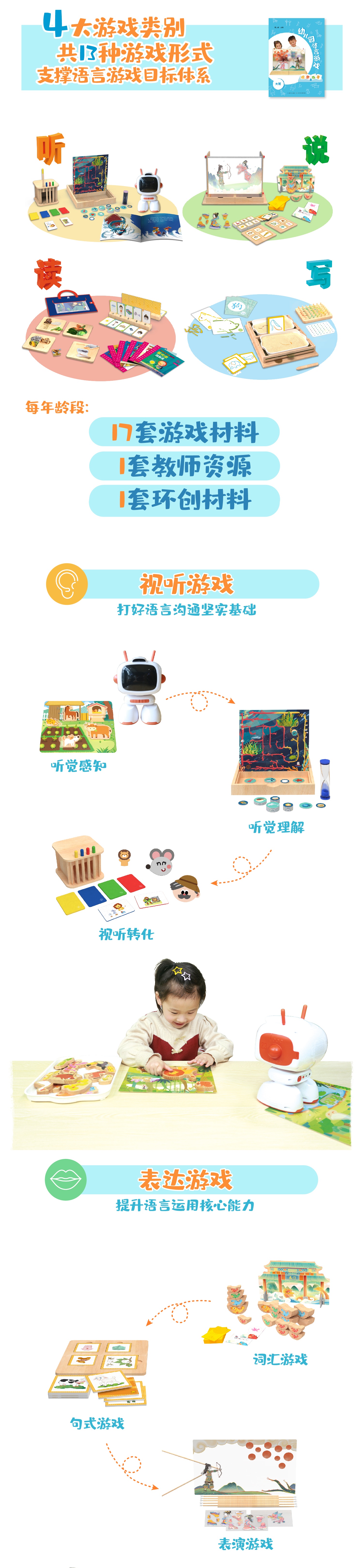 金牌语言游戏区通过视听、表演、阅读、书画四类语言游戏,