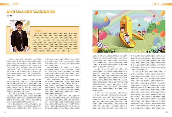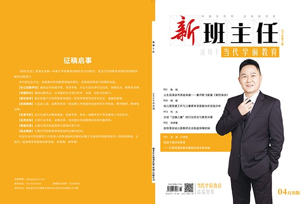 P01 陈 栋 人生因演讲而高级有趣——兼评陈飞新著《掌控演讲》 P04 杨 毅 幼儿园党建工作与儿童德育深度融合的实践分析 P13 代 允 大班“边缘儿童”的行为特点与教育对策 P52 洪秀敏 加快落实幼儿园教师合法权益保障机制 P54 凌 蓉 叶倩倩 给孩子最好的教育 ——访思桥国际教育集团总园长陈世雄